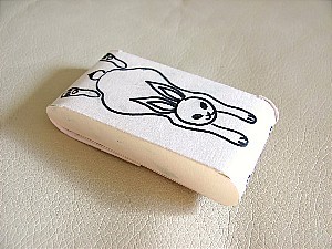 Из бумаги склеена коробочка с закругленными торцами. Внутрь положен железный шарик. Если кролика положить на какую-нибудь наклонную поверхность, то он весело кувыркается вниз.