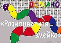 Великолепная возможность для изучения и закрепления с малышом цвета. В наборе 111 карточек-пластин, не считая головы змейки. По возможности и необходимости в игру можно включить только те карточки, цвета которых ребёнок знает или Вы хотите его с каким-то цветом познакомить. Правила игры как в обычном домино. Хочу напомнить: не играйте с ребёнком в игры молча.