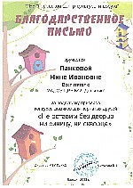 За подготовку призёров конкурса домиков для пернатых друзей «Не оставим без дворца ни синицу, ни скворца» |