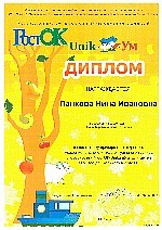 За организацию и проведение открытого межрегионального интеллектуального турнира способностей «РостОК – UnikumУм». За активную жизненную позицию, профессионализм, творческий подход к работе. |