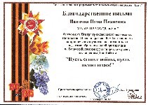 БЛАГОДАРСТВЕННОЕ ПИСЬМО Всероссийского центра гражданских и молодежных инициатив «Идея»