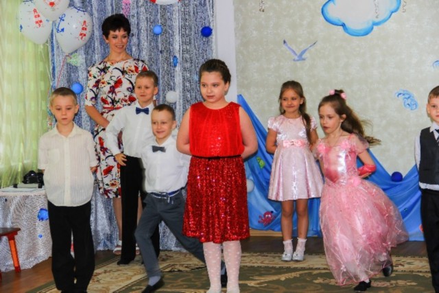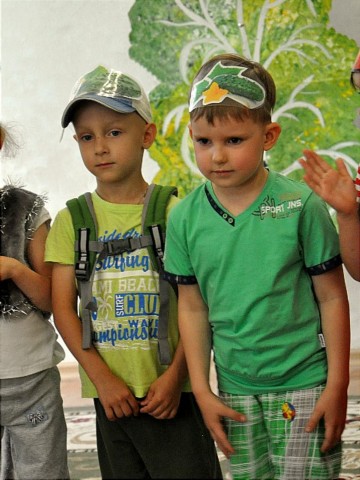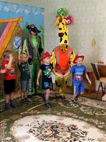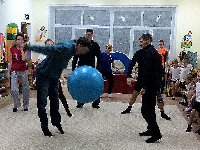 На физкультуре дети вместе со взрослыми путешествовали на воздушном шаре по стране. | |