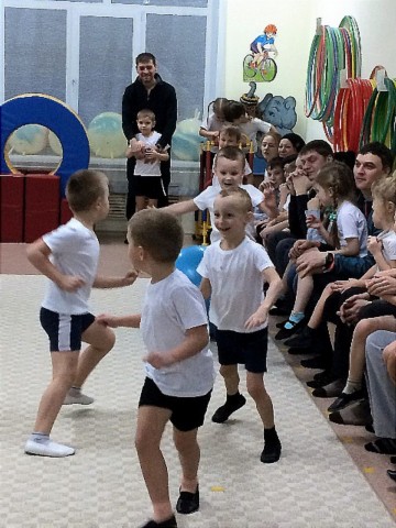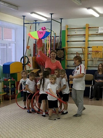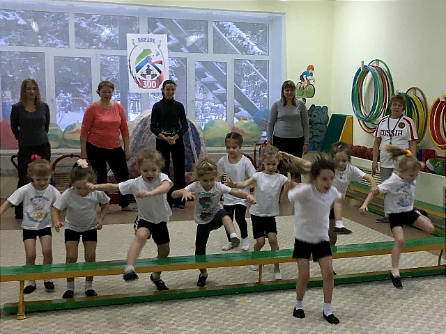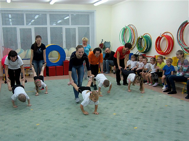 9.00 – 9.25 Физическое развитие Инструктор по физкультуре Тамара Николаевна, воспитатель Нина Ивановна. На физкультуре дети вместе со взрослыми преодолевали препятствия. | |
