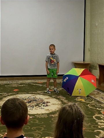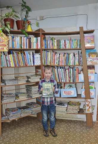 Илья пришёл с подарком - книга для библиотеки из семейной библиотеки. | |