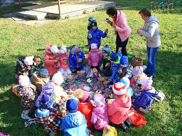 ПРАЗДНИК УРОЖАЯ Осень скверы украшает Разноцветною листвой. Осень кормит урожаем Птиц, зверей и нас с тобой. И в садах, и в огороде, И в лесу, и у воды. Приготовила природа Всевозможные плоды. На полях идёт уборка - Собирают люди хлеб. Тащит мышка зёрна в норку, Чтобы был зимой обед. Сушат белочки коренья, запасают пчёлы мёд. Варит бабушка варенье, В погреб яблоки кладёт. Уродился урожай - Собирай дары природы! В холод, в стужу, в непогоду Пригодится урожай! (Т. Бокова) | |